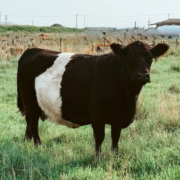 Smoke Show is a belted Galloway cow. She got her name from a Zach Bryan song!